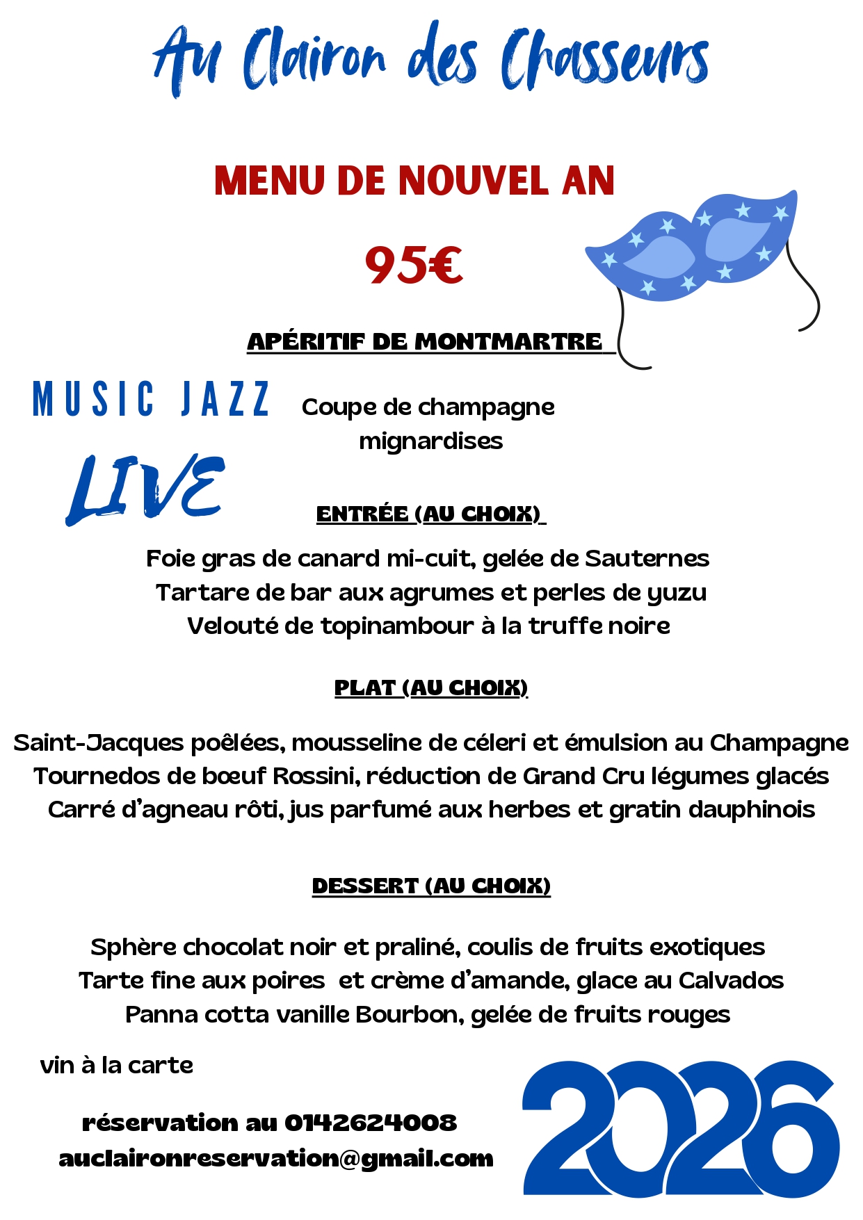 MENU RÉVEILLON DU 31 DÉCEMBRE